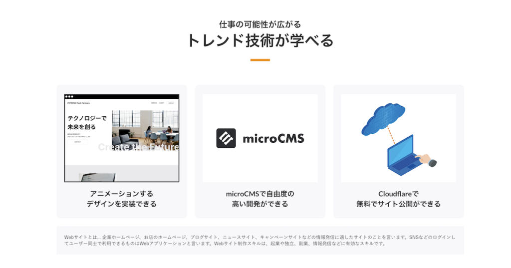 全65レッスンを通して、HTML/CSS、Java ScriptからmicroCMSによるコンテンツ管理方法、SendGridなどまで集約して学べます。