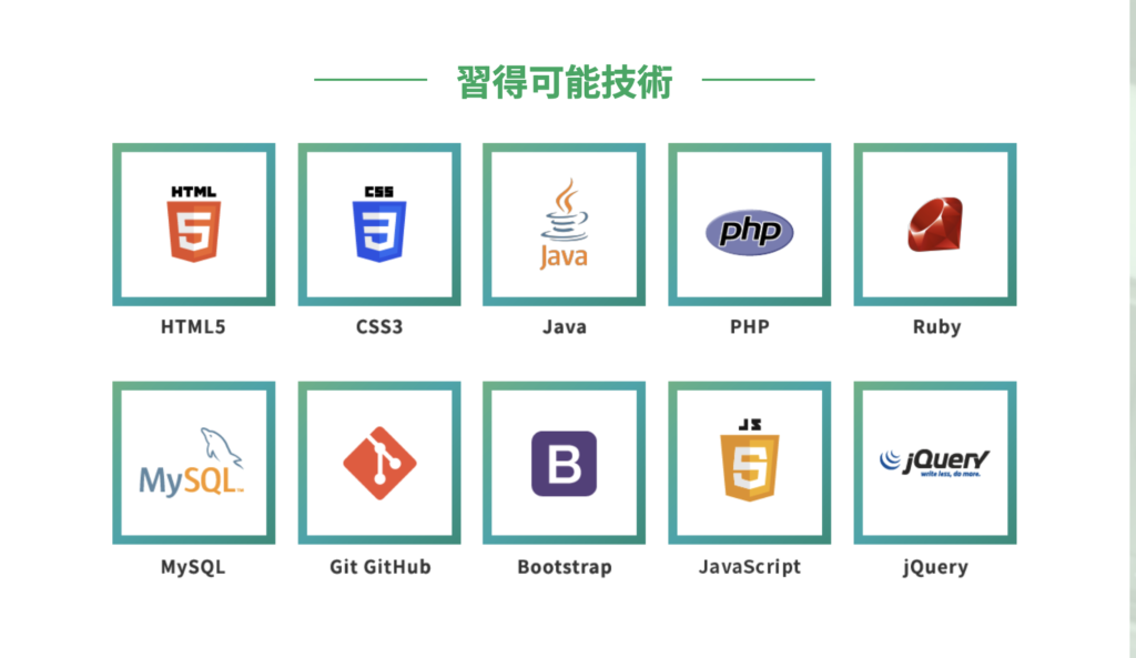 プログラマーコースは、書いてコードの構文・文法を学びながら開発現場で通じるスキルを身に付けていくカリキュラムです。