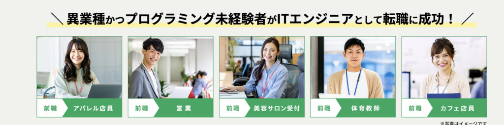 卒業生の中には、最短60日でITエンジニアへのキャリアチェンジを実現している人もいます。アパレルショップやカフェの店員からITエンジニアとして転職に成功している卒業生も多く、プログラムの知識がない方でも十分にエンジニアを目指せる環境です。