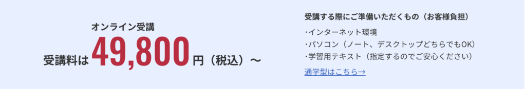 | 受講料 | プランにより異なる 49,800円(税込)〜 |